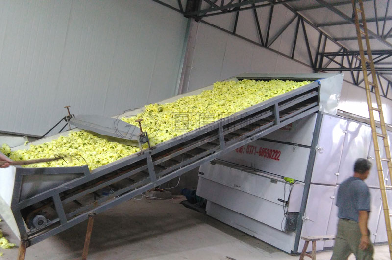 經(jīng)過三天的辛苦忙碌,金花葵烘干機終于安裝調(diào)試好了,張先生和售后工程師們馬上進(jìn)行了第一爐的金花葵烘干測試。經(jīng)過幾個小時的烘干,成品金花葵新鮮出爐,只見出料口的金花葵干度均勻,色澤淺黃,微帶深色,聞起來有一股怡人的清香,烘干效果非常好,張先生表示對這套網(wǎng)帶式金花葵烘干設(shè)備的烘干效果非常滿意。