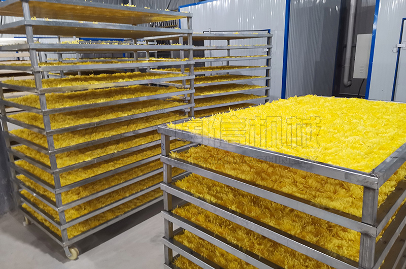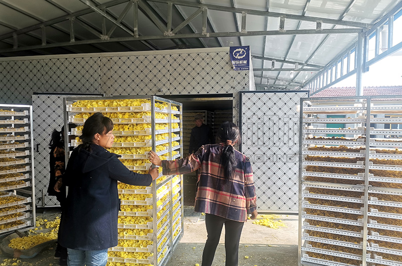 導(dǎo)讀:鮮菊花含水率我們按80%,要烘干到含水率13%,通過公式:干花重量=濕花重量×(1-烘干前含水率)/(1-烘干后含水率)可以計算出一百斤藥用菊花烘干后剩23斤左右,而鮮菊花4.35斤烘干后為一斤干菊花。