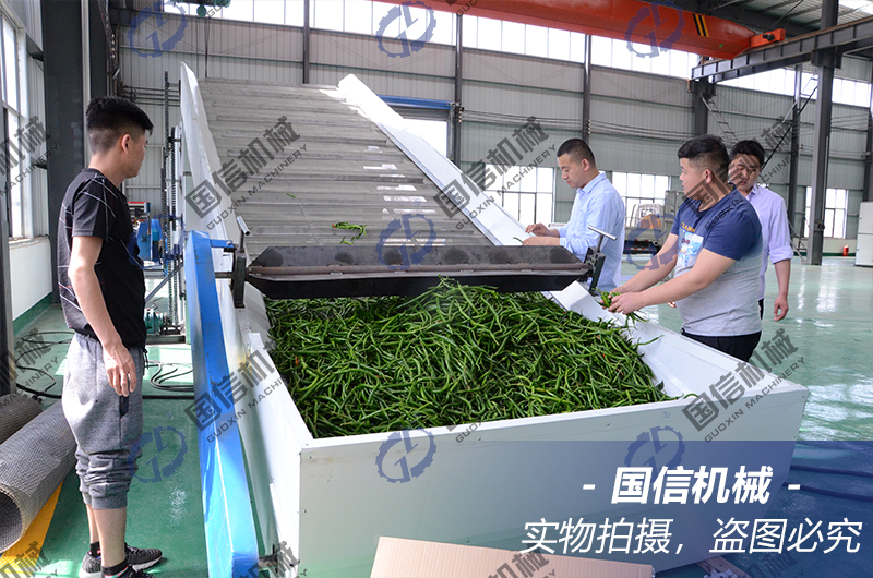 此設(shè)備采用的是動態(tài)烘干模式,主要是進出料系統(tǒng)、烘干主機、熱源系統(tǒng)、控制裝置和傳統(tǒng)系統(tǒng)幾個部分組成,其工作原理是:在傳動系統(tǒng)的作用下,會使進料裝置和烘干主機內(nèi)部的多層網(wǎng)帶同步運行,采摘后的果蔬經(jīng)過清洗、挑揀、切分處理后,通過自動進料裝置,進入烘干主機內(nèi)部,與此同時,熱源部分提供的熱量會在引風(fēng)機作用下,進入烘干主機,對主機內(nèi)部的果蔬進行烘干。