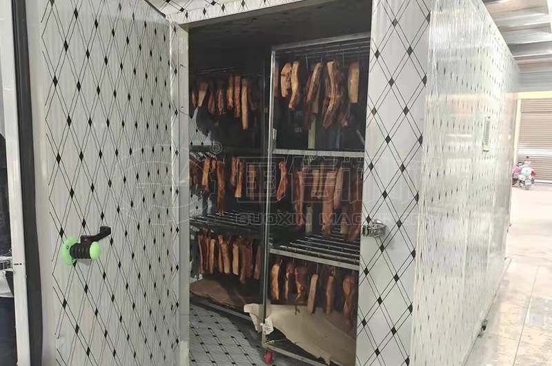 導(dǎo)讀:空氣能臘肉臘腸烘干機(jī)的工作原理是利用逆卡諾原理,制冷劑被壓縮機(jī)壓縮,變成高溫高壓的氣體,氣體溫度可達(dá)100-110℃,如此高溫的氣體通過管路(銅管)進(jìn)入換熱器(冷凝器)中,然后再通過風(fēng)機(jī),將換熱器(冷凝器)產(chǎn)生的熱量送至烘干房內(nèi)對物料進(jìn)行加熱、烘干,烘干房內(nèi)被加熱的物料水分蒸發(fā),通過除濕機(jī)除濕或抽濕機(jī)排至烘干房外,從而達(dá)到干燥的目的。