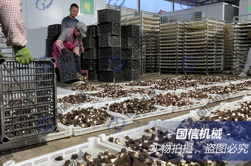導(dǎo)讀:適時(shí)采收是加工優(yōu)質(zhì)干羊肚菌的關(guān)鍵措施之一。過早采收產(chǎn)量低,過遲采收營(yíng)養(yǎng)成分低,價(jià)值也低。羊肚菌子囊果的成熟以菌柄淡黃色,菌柄初變褐為標(biāo)志,通常采收的子囊果要以八分成熟為宜,此時(shí)整個(gè)菇體分化完整,顏色由深灰變淺灰或褐黃,菌蓋飽滿,蓋面溝紋明顯,邊緣較厚,外形美觀,口感最好。