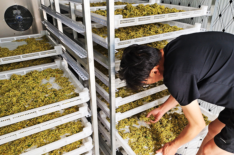 導(dǎo)讀:金銀花作為重要的大宗“藥食同源”的中藥材,金銀花除臨床大量藥用外,食品領(lǐng)域也在逐年廣泛使用,如新鮮金銀花和干花均可泡茶飲用。干品金銀花茶飲香味較低,但保持了金銀花的藥效作用,不失其保健效果。熱風(fēng)循環(huán)式烘干房烘干金銀花的技術(shù)方案如下