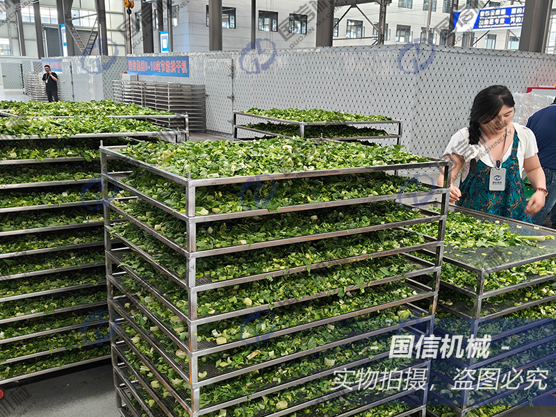 2025年5月16日,客戶(hù)帶幾百斤芹菜來(lái)廠(chǎng)試機(jī)烘干,不僅要烘干后的芹菜干,烘干中產(chǎn)生的冷凝水也要打包二次加工再出售,芹菜烘干全程用了十個(gè)小時(shí)左右,成品