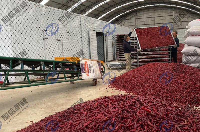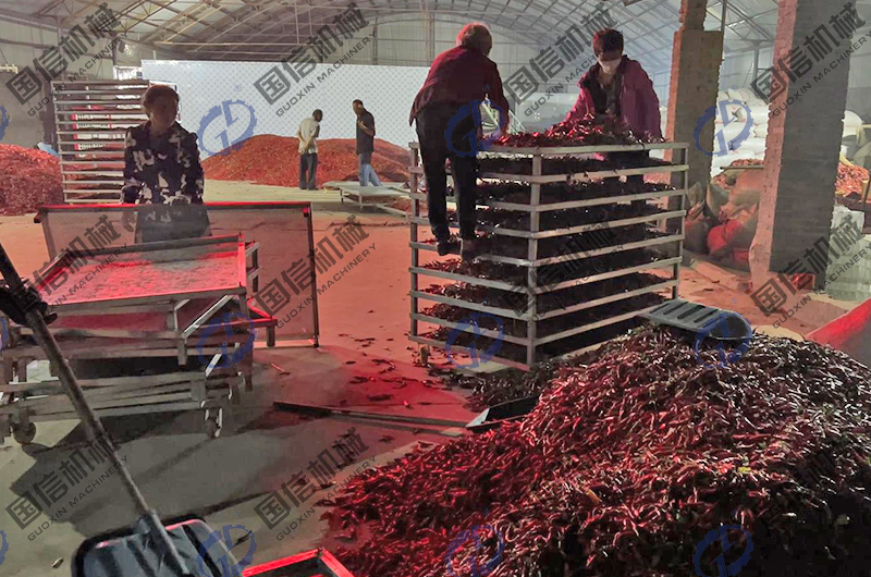 近日,許昌長(zhǎng)葛的客戶(hù)在我公司購(gòu)買(mǎi)的空氣能辣椒烘干房已經(jīng)投入使用,并開(kāi)始盈利。目前,設(shè)備運(yùn)行順暢并得到客戶(hù)的一致好評(píng),下面是工作人員拍攝的辣椒烘干加工現(xiàn)場(chǎng)圖片。