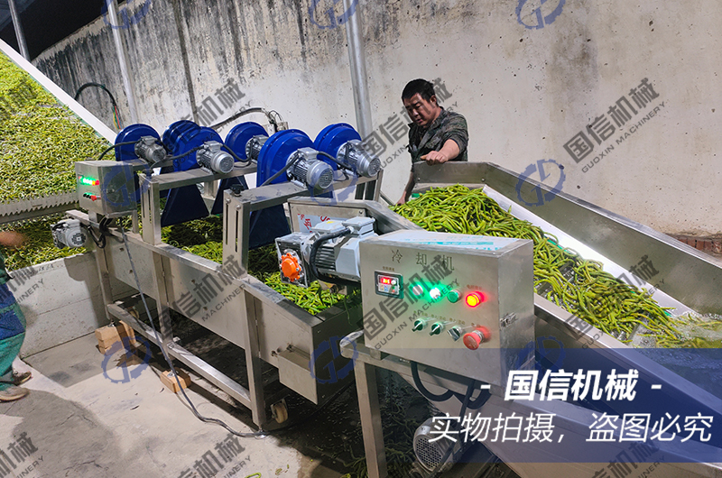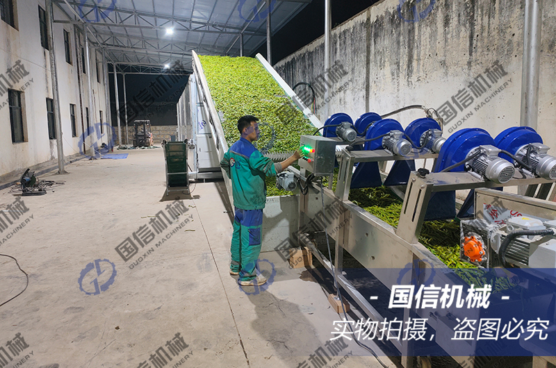 今天給大家介紹的是我們云南客戶豆角烘干加工現(xiàn)場,烘干豆角的流程需要把新鮮的豆角通過漂燙機進行殺青護色,然后通過輸送帶放入烘干設(shè)備內(nèi),經(jīng)過數(shù)小時的均勻排濕烘干后的干貨成色非常好很受市場歡迎,客戶選用的是大型連續(xù)式清洗殺青烘干設(shè)備,設(shè)備是自動化生產(chǎn)全程只需一兩人工,烘干成本低效率高非常適合大型農(nóng)業(yè)加工使用。