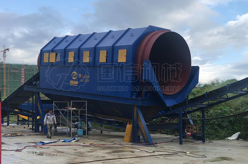 滾筒篩分機(jī)的主要結(jié)構(gòu)為篩分筒,篩分筒由多個(gè)圓形篩孔組成。滾筒篩分設(shè)備的整體和地面平面呈傾斜狀態(tài),外部由隔離罩密封,避免對(duì)環(huán)境造成污染。在使用變速器時(shí),滾筒篩以一定的速度旋轉(zhuǎn)。材料從上到下通過設(shè)備,然后通過篩分離。細(xì)料從篩分筒的前端和下端排出,粗料從篩分筒的下端排出。